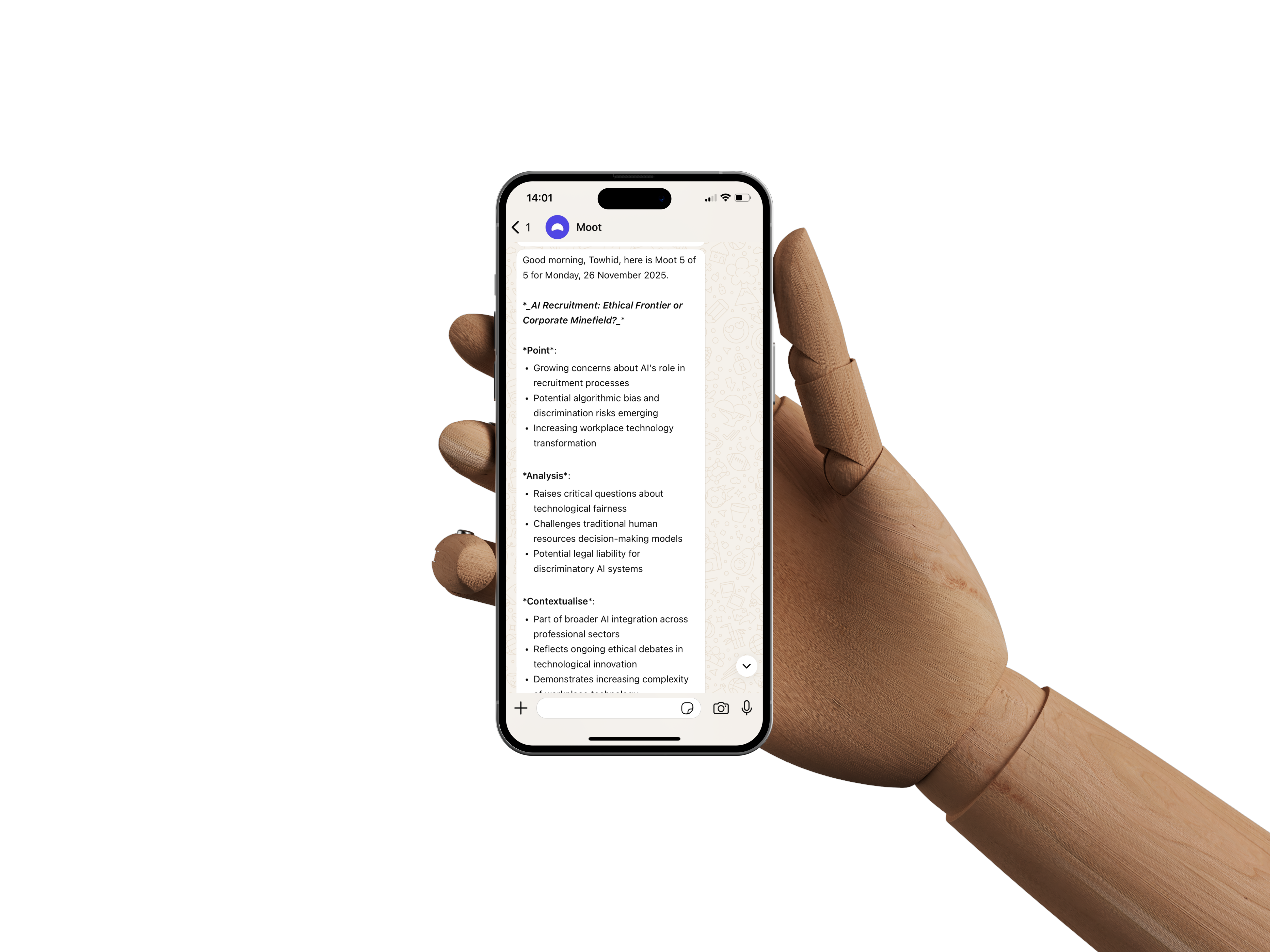 MOOT selects only the updates that shape markets and influence firm conversations. Our PACT formula organises noise into a briefing you read once and can deploy immediately in an interview.